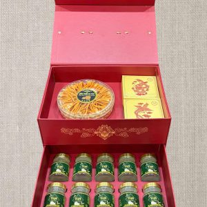 Thành phần: Chiết xuất đông trùng hạ thảo hàn quốc (nhóm Militaris) chiếm 12.54%, Mật ong hàn quốc, Glycerin, bạch chỉ hàn quốc, lactose (sữa, dextrin), địa hoàng, giần sàng, ngũ gia bì, sơn tra, bạch truật, mẫu đơn, cam thảo, Ulmus davidiana. Chiết xuất hồng sâm hàn quốc (ginsenoside 70mg/g) chiếm 0.5%.